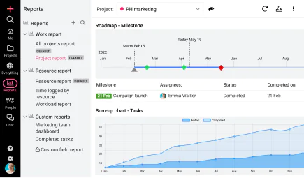 Receive detailed asset and project feedback through ProofHub’s custom reporting tool. Visualize current progress, resources at hand, and performance through detailed reports.